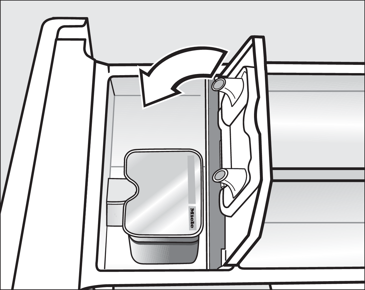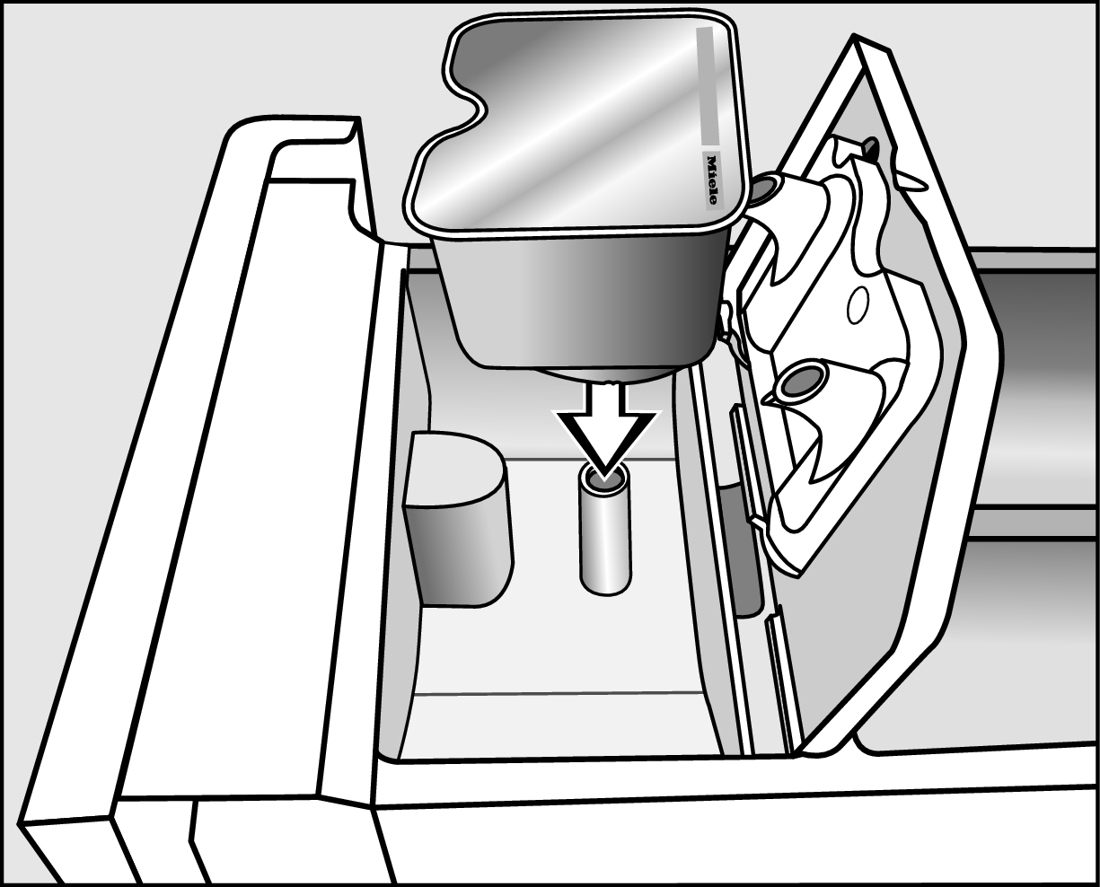 Për të futur kapsulën, hapni sirtarin e detergjentit.v